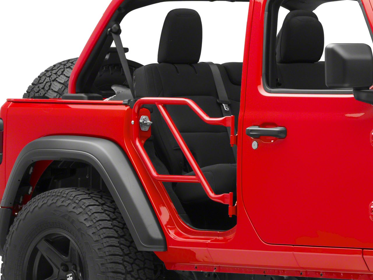 Application. These Steinjager Red Baron Rear Trail Tube Doors are designed to fit all 2018-2026 Jeep Wrangler JL 4-Door models.