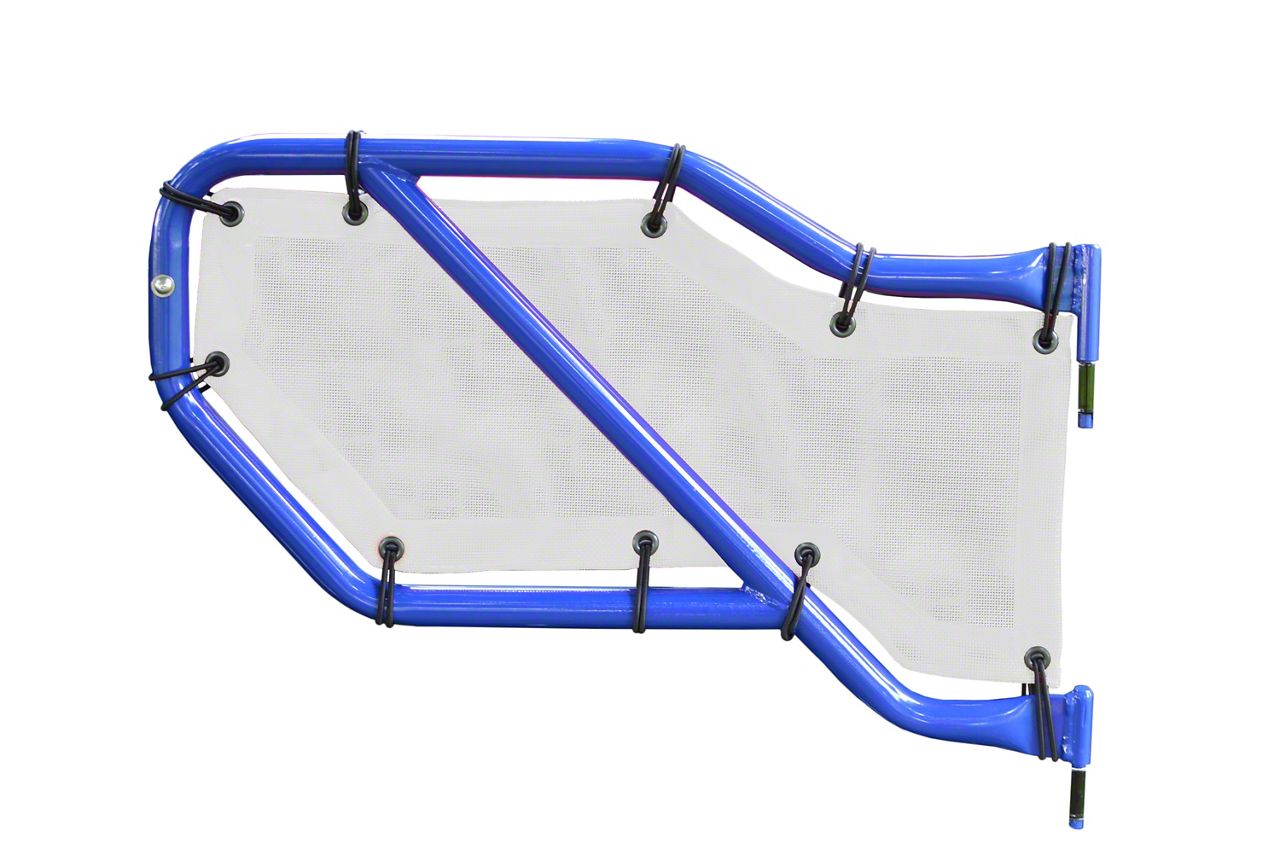 Application. The White Steinjager Rear Tube Door Cargo Net Covers are created to fit 2018-2024 Jeep Wrangler JL 4-Door models.
