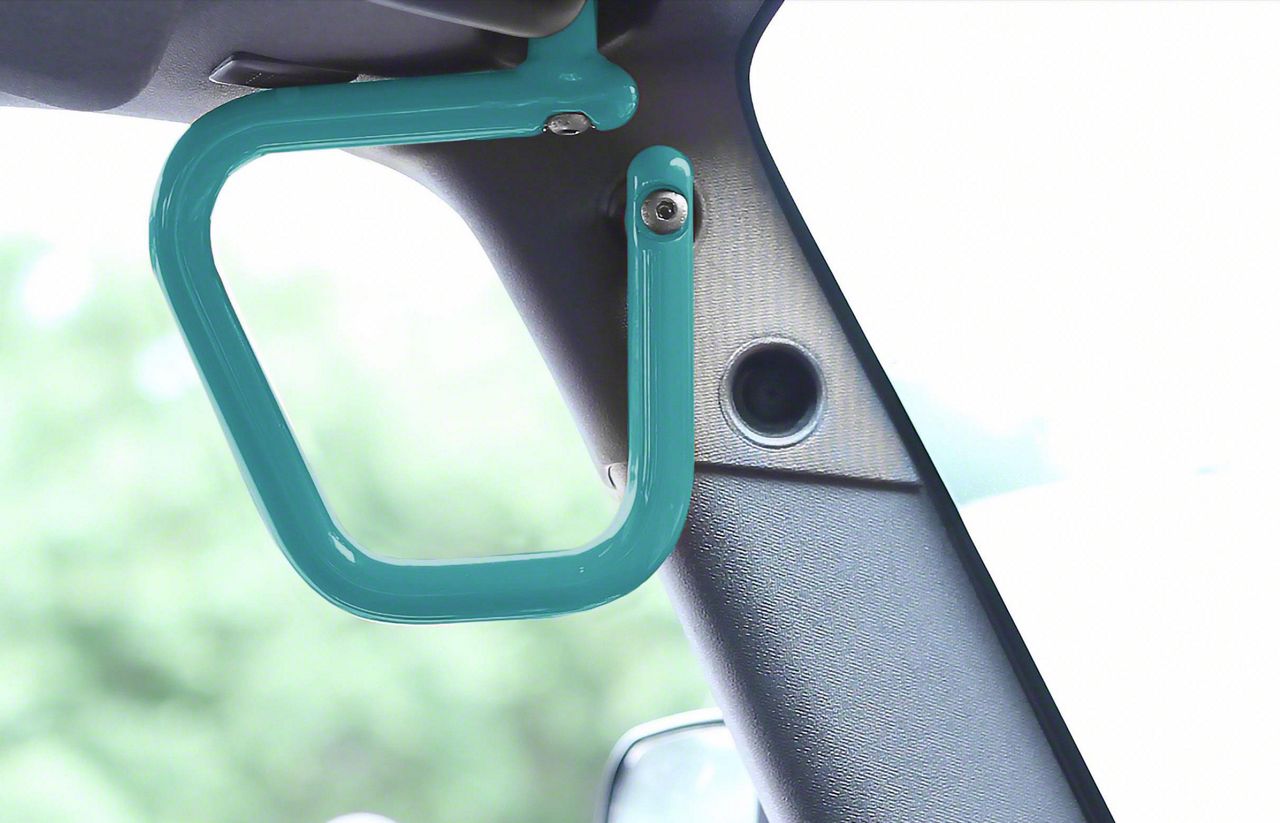Stylish Grab Handles. These Steinjager Rigid Wire Form Front Grab Handles feature a bright teal color that will improve the appearance of your Jeep Wrangler JK. In addition, these grab handles allow for easy boarding and feature direct bolt-on installation without modification.