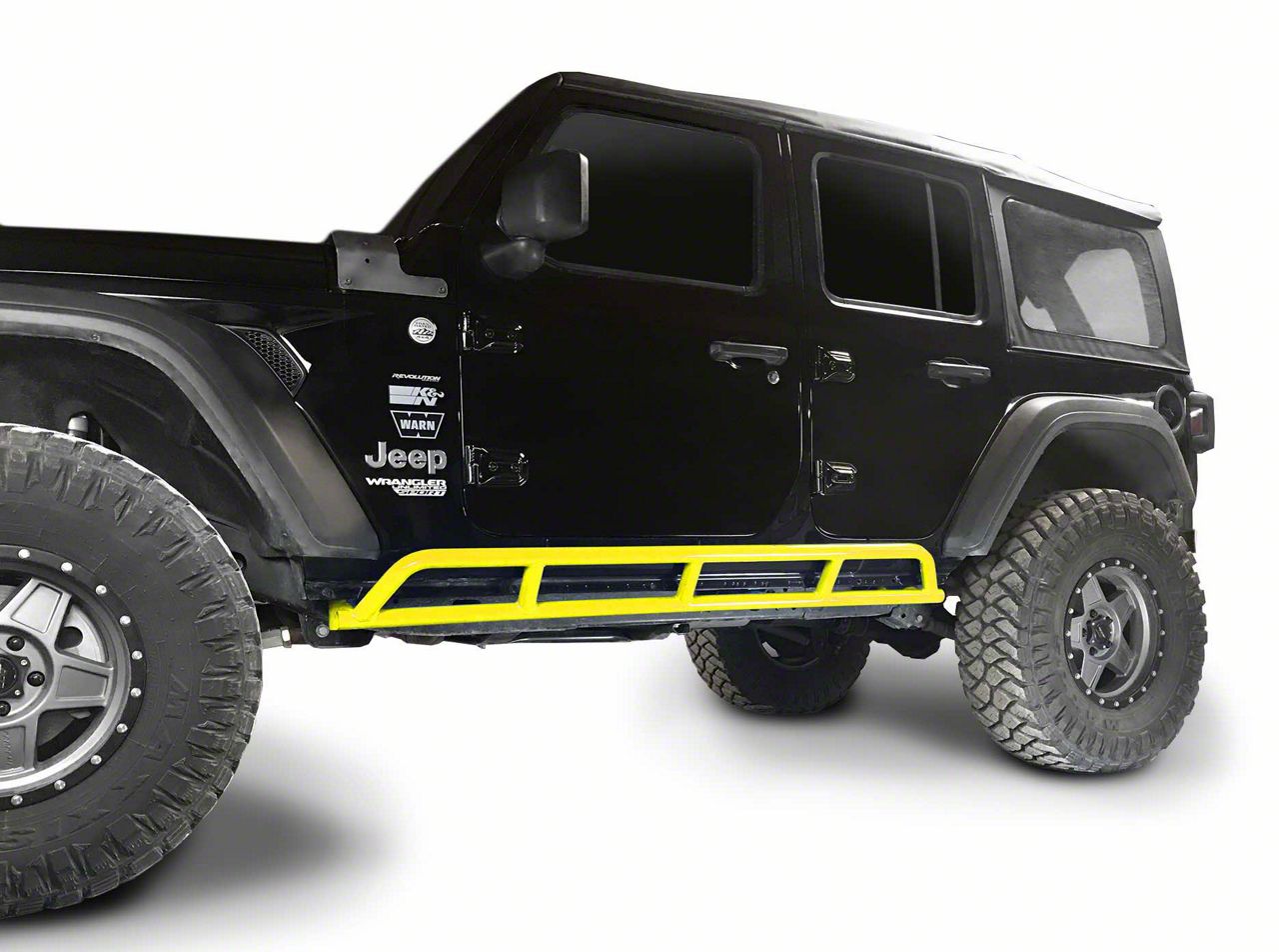 Application. The Steinjager Rock Sliders; Neon Yellow fits all 2018-2026 Jeep Wrangler JL 4-Door models