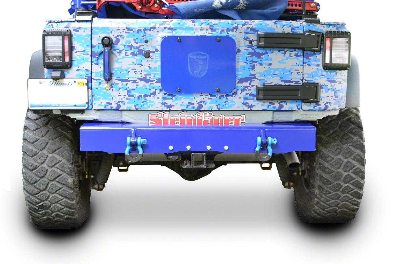 Application. The Steinjager Stubby Rear Bumper with D-Ring Mounts - Southwest Blue is built to be a perfect fit for all 2007-2018 Jeep Wrangler JK models.