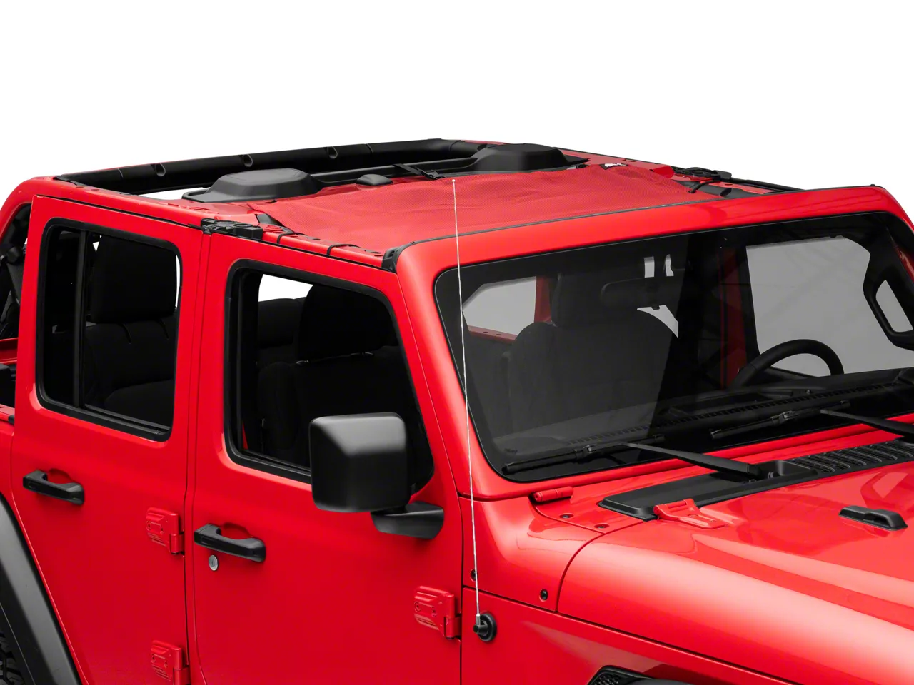 Application. The Steinjager Red Teddy Top Front Seat Solar Screen Cover is intended for use on all 2018-2026 Jeep Wrangler JL models.