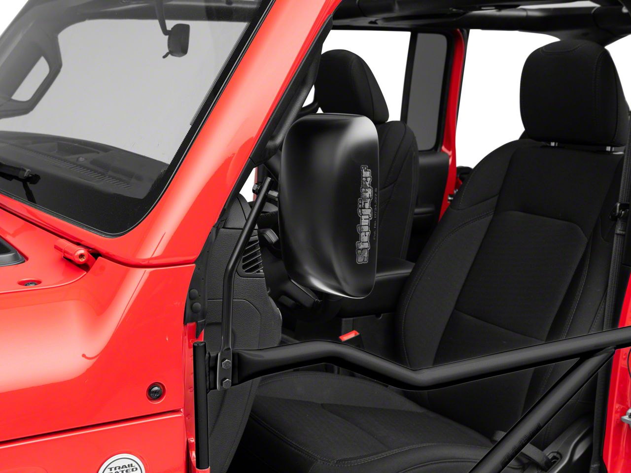 Application. This Steinjager Tube Door Mirror Kit in Black can be installed on 2018-2026 models of the Jeep Wrangler JL models equipped with Steinjager tube doors.