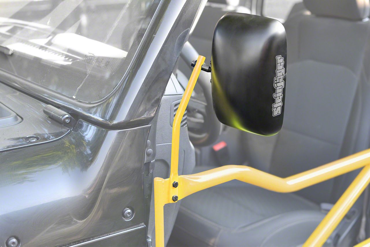 Crafted From Highly Durable Materials. This Steinjager Tube Door Mirror Kit features tough ½-inch steel mounting arms and durable rectangular-shaped mirrors. Thanks to these high-quality components, this kit won’t be easily buffeted by flying debris and the harsh off-road terrains.