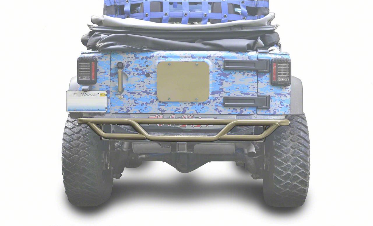 Application. The Steinjager Tubular Rear Tube Bumper - Military Beige is designed for the 2007-2018 Jeep Wrangler JK.
