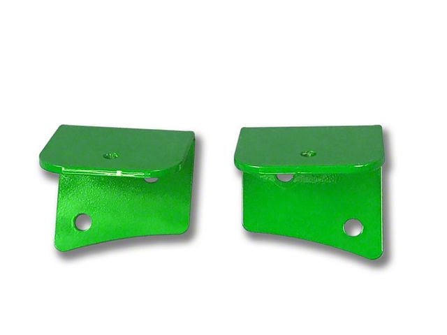 Brawny Build Quality. These lower windshield light mounting brackets start as 3/16-inch thick plates of high-grade steel, making them extremely brawny. These steel plates are then machine-formed to exact specifications, providing an accurate fit when installed. Finally, these windshield light mounting brackets receive a durable neon green powder-coat finish to give them their distinctive style.