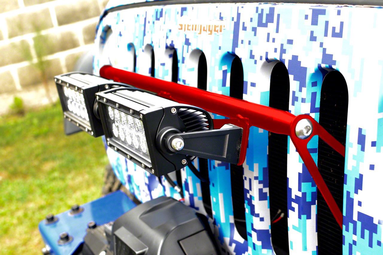 Application. These Steinjager LED Light Bar Grille Mounting Brackets; Red Baron are designed to fit 2007-2018 Jeep Wrangler JK models. Please note that no lights are included in this kit.