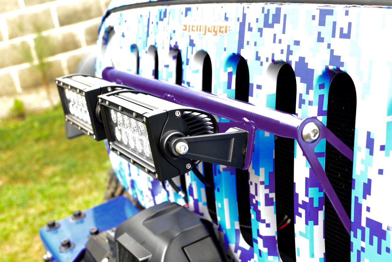 Application. These Steinjager LED Light Bar Grille Mounting Brackets; Sinbad Purple are designed to fit 2007-2018 Jeep Wrangler JK models. Please note that no lights are included in this kit.