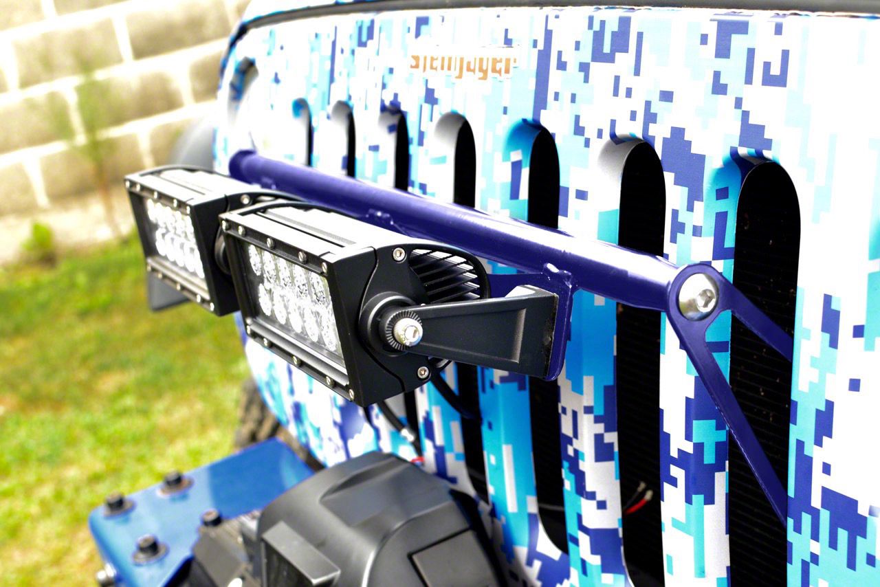 Application. These Steinjager LED Light Bar Grille Mounting Brackets; Southwest Blue are designed to fit 2007-2018 Jeep Wrangler JK models. Please note that no lights are included in this kit.