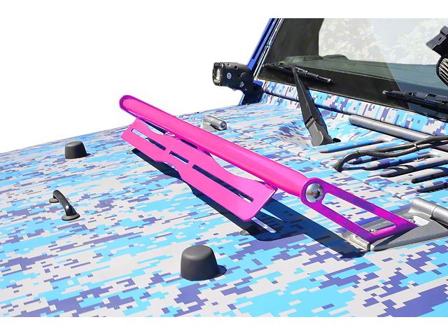 Hot Pink Finish. Constructed from high-strength materials, the LED light bar hood hinge mounting brackets are guaranteed to provide a long-lasting, reliable mount for your aftermarket lights, keeping them safe and offering long-term illumination. In fact, the brackets are even made in America for unbeatable quality and feature 2 outer slots that are 0.30 x 7.50 inches and a center slot that is 0.30 x 3.00 inches for maximum functionality. The brackets are also finished with a hot pink powder coat that is just as stylish as it is hardcore as it protects against rust and corrosion damage while adding a customized, eye-catching accent to your Jeep's overall appearance.