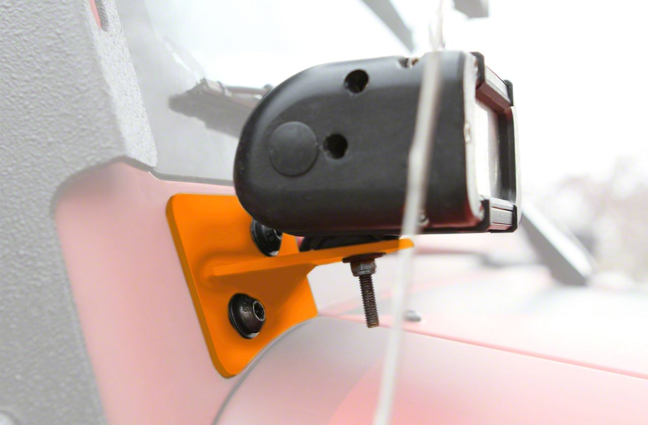 Application. These Steinjager Lower Windshield Mounting Brackets; Fluorescent Orange are designed to fit 2007-2018 Jeep Wrangler JK models. Driver and passenger side included. Please note that no lights are included in this kit.