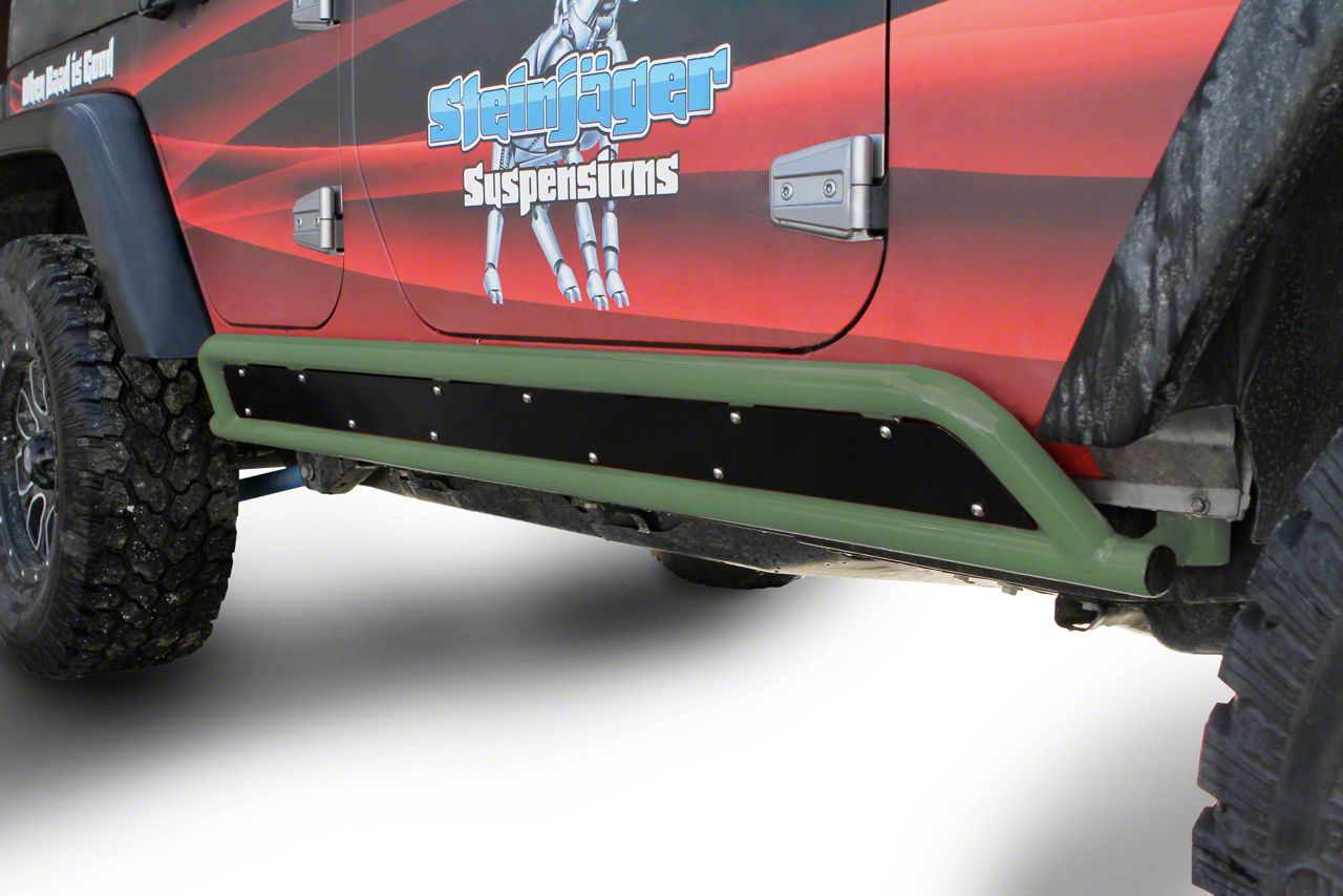 Application. The Steinjager Phantom Rock Sliders - Locas Green are compatible with the 2007-2018 Jeep Wrangler JK 4 Door.