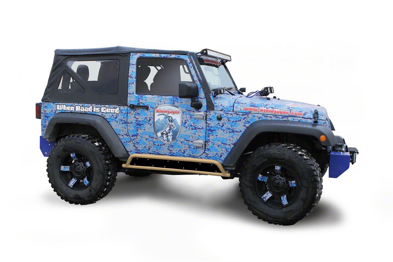 Application. These Steinjager Phantom Rock Sliders in Military Beige fit all 2007-2018 Jeep Wrangler JK 2- door models.