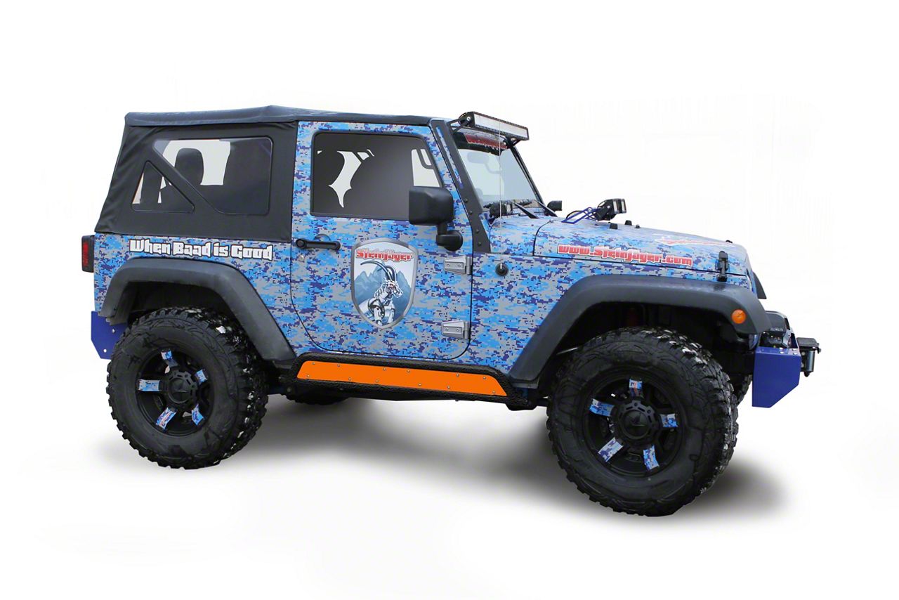Application. This Fluorescent Orange Phantom Rock Slider Insert Kit by Steinjager is designed to fit 2007-2018 Jeep Wrangler JK 2-Door models.
