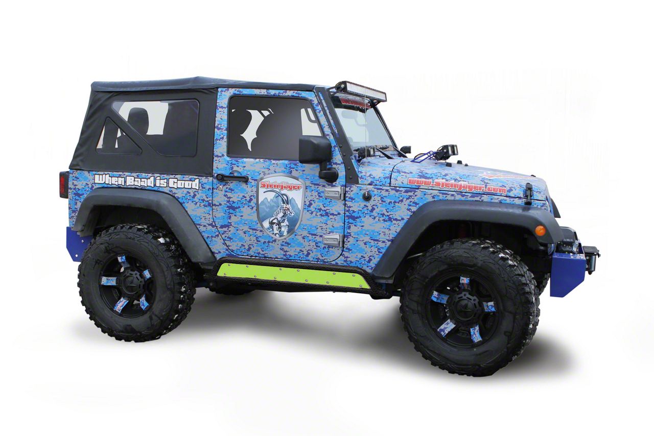 Application. This Gecko Green Phantom Rock Slider Insert Kit by Steinjager is designed to fit all 2007-2018 Jeep Wrangler JK 2-Door models.