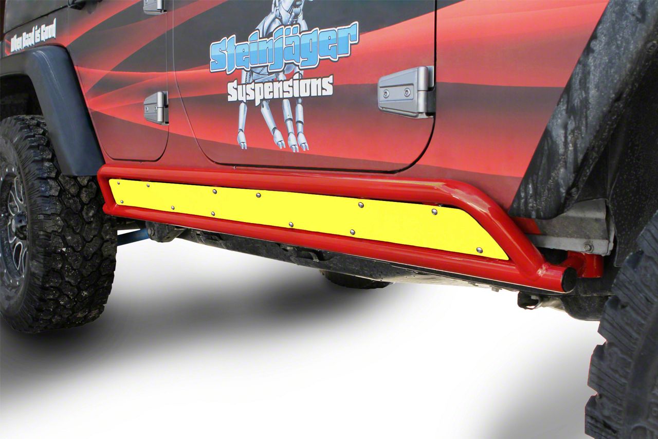 Stylish and Quality Off-Road Protection. Driving on rocky terrains can cause severe damage to the undercarriage and side paint of your Jeep Wrangler. Thankfully, this Steinjager Phantom Rock Slider Insert Kit will give you a complete rock slider assembly so you can have well-rounded protection against rocks, bushes, and other off-road hazards. The neon yellow color of the insert plates is also meant to add a complementing or contrasting look to your Jeep’s rugged exterior finish.