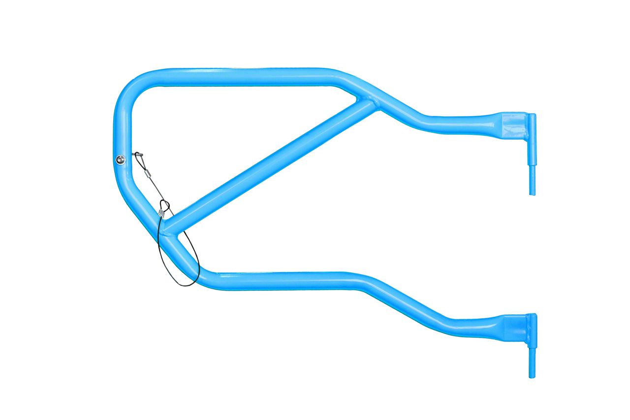 Built for Off-Road Abuse. These Steinjager Trail Tube Doors feature custom machined-hinges that allow for easy and convenient switching from stock to tube door setup. The tube doors itself are made from 1.25-inch steel tubing that’s been cold-formed to reinforce its tensile strength. Surfaces are finished in a bright Playboy Blue, not just for style but also to protect against rust and corrosion.