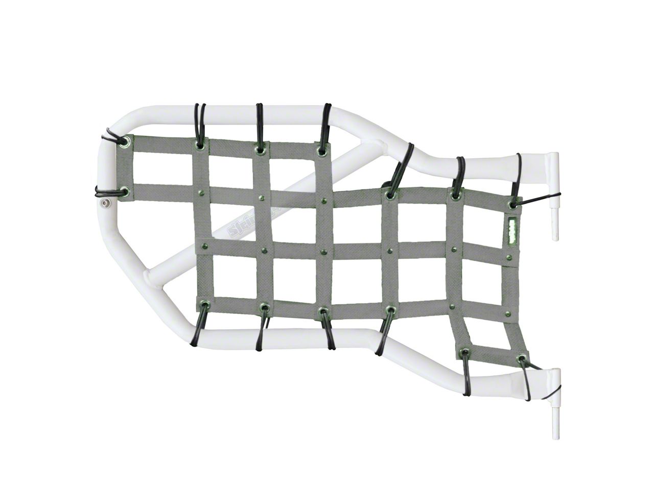 Improves Tube Door Appearance. The Steinjager tube doors provide a lightweight and good looking replacement for the factory doors. You can make them better with the addition of these gray Steinjager Rear Tube Door Cargo Net Covers. They come in an attractive gray premium-quality material with a design that complements their other cargo net accessories and your Jeep Wrangler JK 4-door.