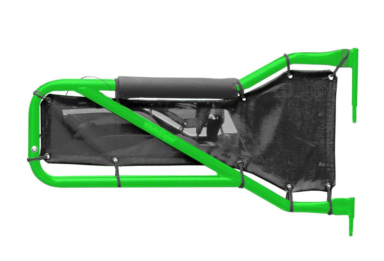 Enjoy The Off-Road Thrill. Steinjager Front Tube Doors in Neon Green & Black Mesh allow you to enjoy the outdoors from the comfort and safety of your Wrangler JK. These tube doors let you have access to fresh air and the necessary visibility for taking on tough trails. Install these rugged tube doors for a true open-air driving experience but with safety in mind.
