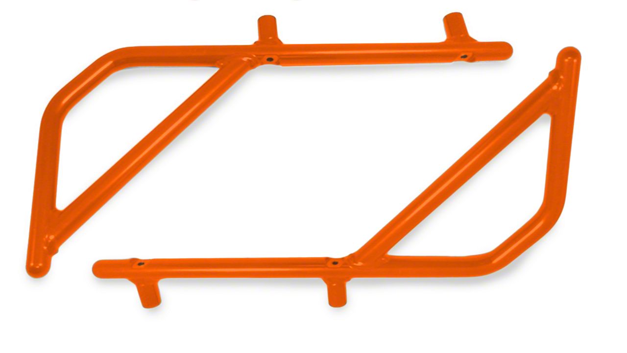 Application. These Fluorescent Orange Steinjager Rigid Wire Form Rear Grab Handles have been specially designed for all 2007-2018 Jeep Wrangler JK 2-door models.