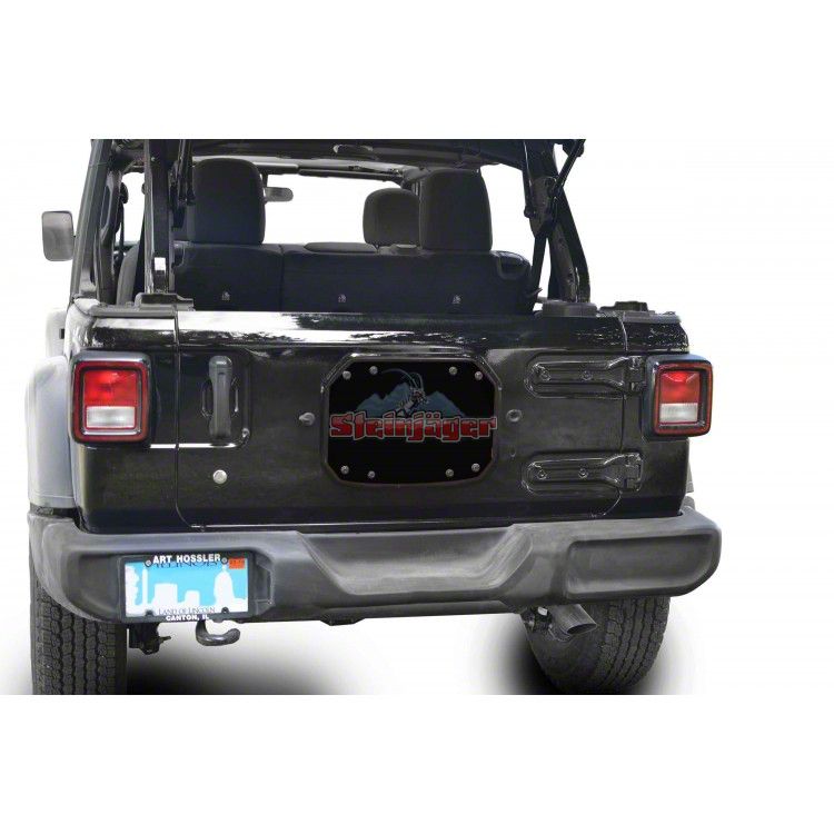 Impressive Spare Tire Carrier Delete Plate. Keep your Jeep’s impressive appeal, even with the spare tire carrier dismounted, with this Steinjager Spare Tire Carrier Delete Plate. It has been designed to perfectly cover the holes in the tailgate section where the spare tire carrier has been removed. In addition, its tough design and impressive finish fortify your Jeep’s tailgate with stunning style.