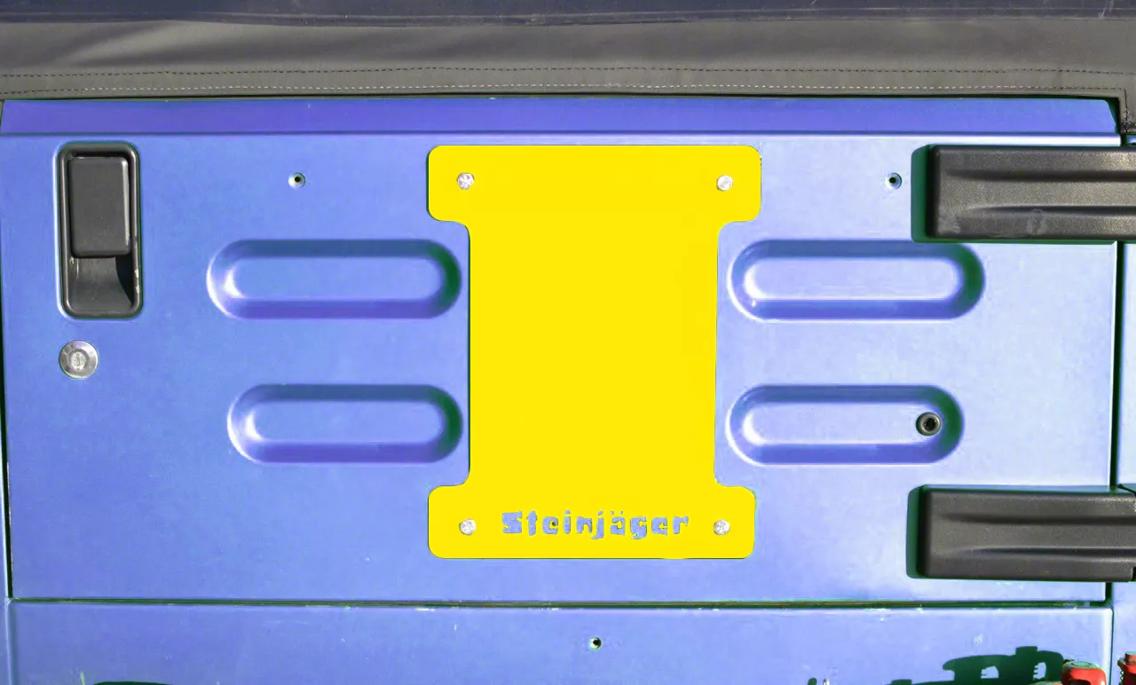 Superb Design and Practical Tailgate Protection. Dismounting your Jeep’s spare tire carrier exposes unpleasant holes. Cover them up with this Steinjager Spare Tire Carrier Delete Plate. It has been designed to offer stylish covering while also providing some protection to the tailgate’s spare tire carrier mounting locations. Indeed, this delete plate retains your off-roader’s pristine appeal, even with the tire carrier removed.