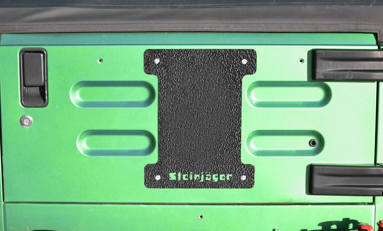 Application. This Textured Black Spare Tire Carrier Delete Plate from Steinjager is designed to fit all 1997-2006 Jeep Wrangler TJ models