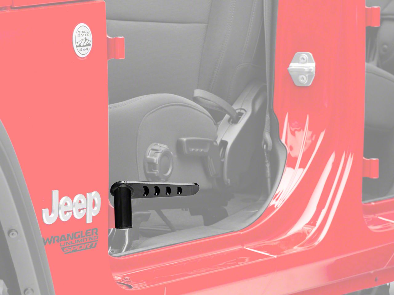 Quick and Easy Installation. These Stationary Foot Pegs are designed to slip onto the Jeep’s door hinges within seconds. Note that removal and safe storage of the JL’s doors are required to use these Foot Pegs.