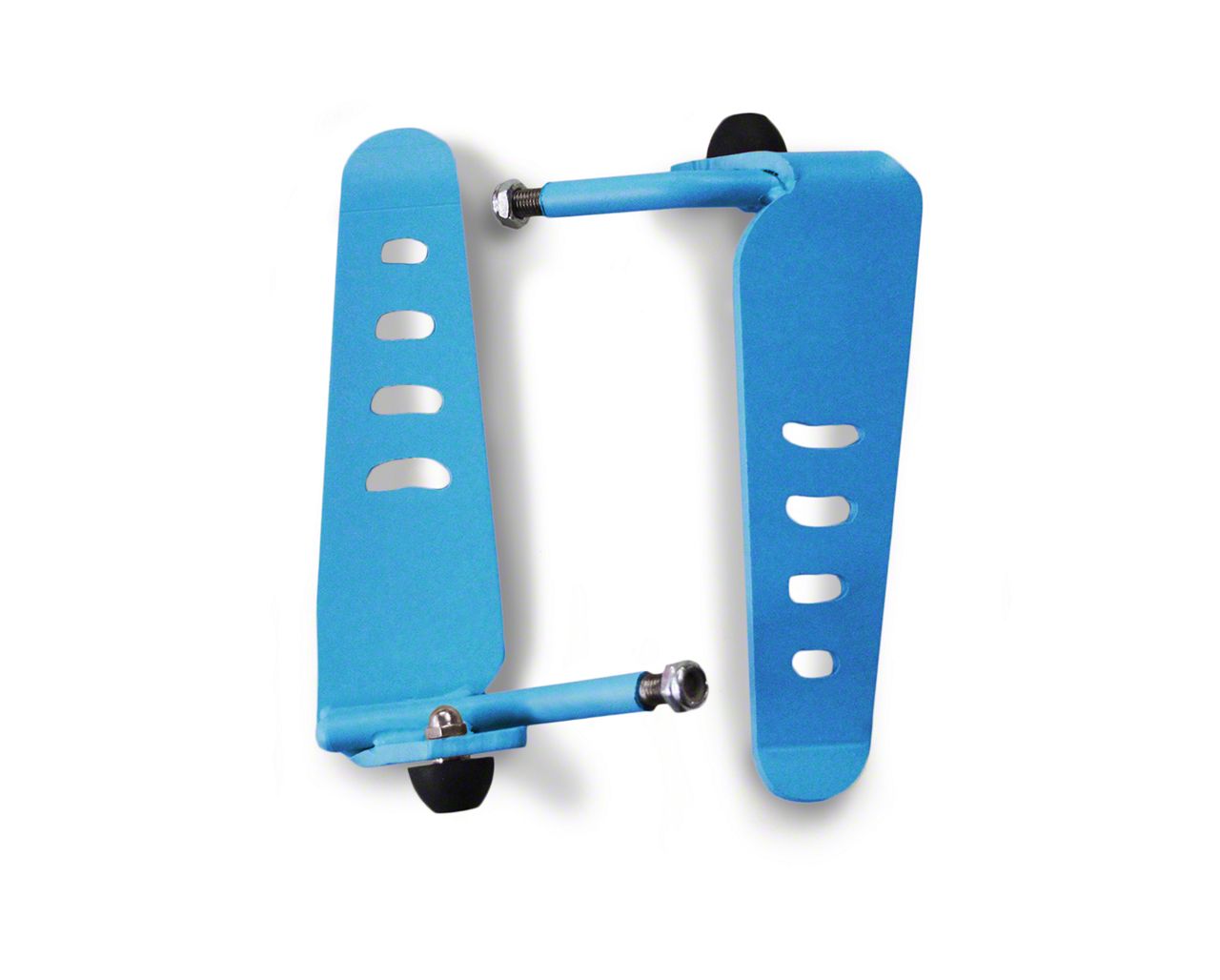 Top-Quality Construction. The Steinjager Stationary Foot Pegs were built in the USA and intended to last for quite a long time. Featuring 3/16-inch plate steel construction and stainless steel hinge pins, these foot pegs come in an attractive “Playboy Blue” finish for an overall enhanced look for your Wrangler.