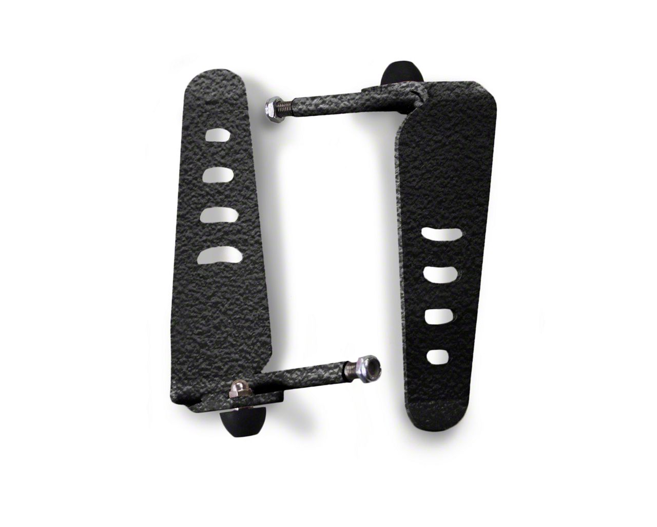 Comfortable Foot Rest Pegs to Help Stretch Your Legs. Off-roading can be very taxing, especially on the legs. Fortunately, these textured black Steinjager Stationary Foot Pegs were designed to give you relief. Just install this quickly when you want to stretch your legs a bit after a tiring off-road drive. These pegs are easily mounted on the lower door hinge when the doors are removed. The textured black finish not only looks good, but is also great in hiding scratches and dirt incurred from your off-road adventures.