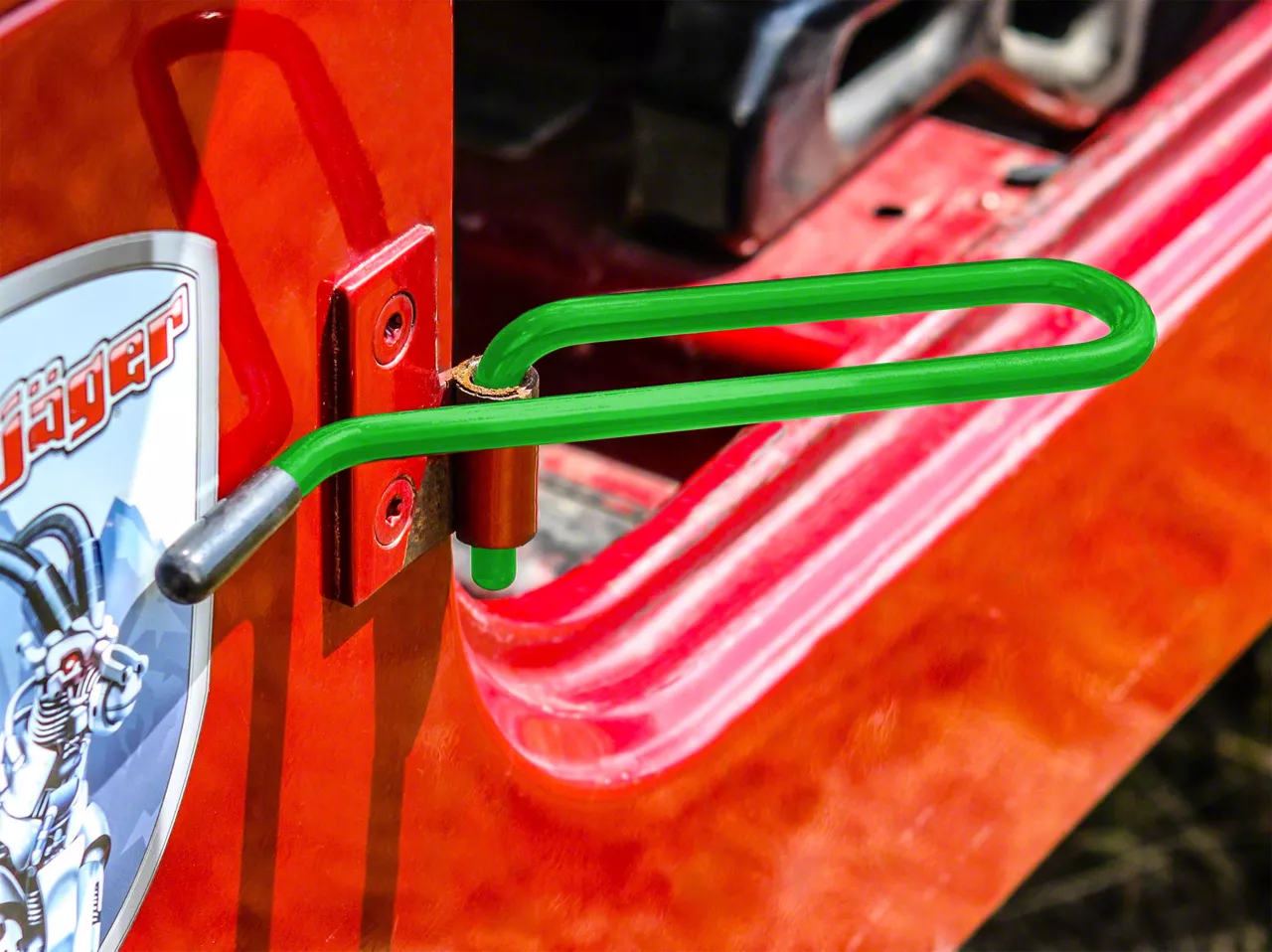 Stylish Foot Rest Kit. Get to enjoy the scenery during your off-road adventures and conveniently sit in your Jeep Wrangler YJ with this neon green Steinjager Stationary Foot Rest Kit. Featuring a round metal tube design, these foot rests will give you a convenient place to rest your tired feet while admiring nature or when simply relaxing in your vehicle. Meanwhile, the neon green powder-coat finish gives your Jeep a refreshing look at the side door.