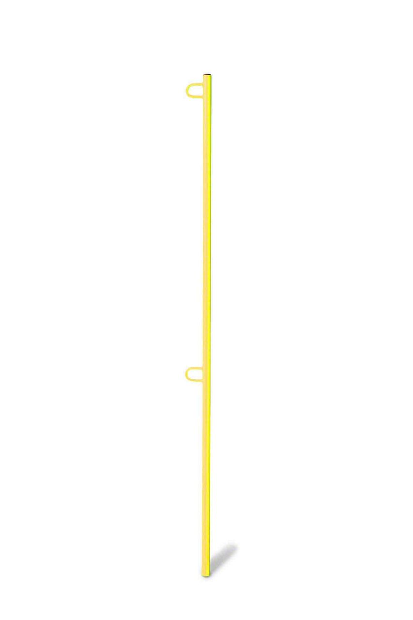 Construction and Design. This Flag Pole Kit is made from 1 inch OD x .120 inch wall tubing. Its neon yellow finish blends and there's a plastic cap at the top of the pole to keep water and dirt out. The spacing between loops is 34 inches, which means you can hang a variety of flags.