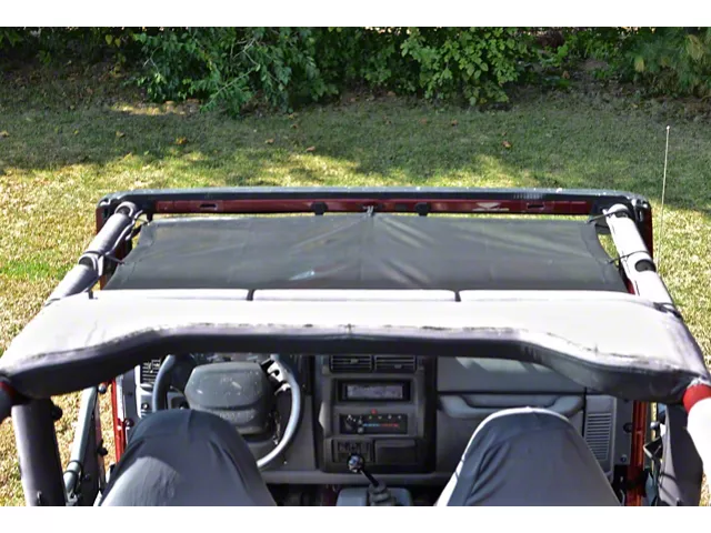 Designed for Jeep. The Steinjager Teddy Top Front Seat Solar Screen Cover - Black is designed specifically for Jeep and is guaranteed to deliver superior front seat coverage for all Wrangler TJ models. Manufactured to provide a true, open-air topless feel, you will get superior protection from harmful UV rays.