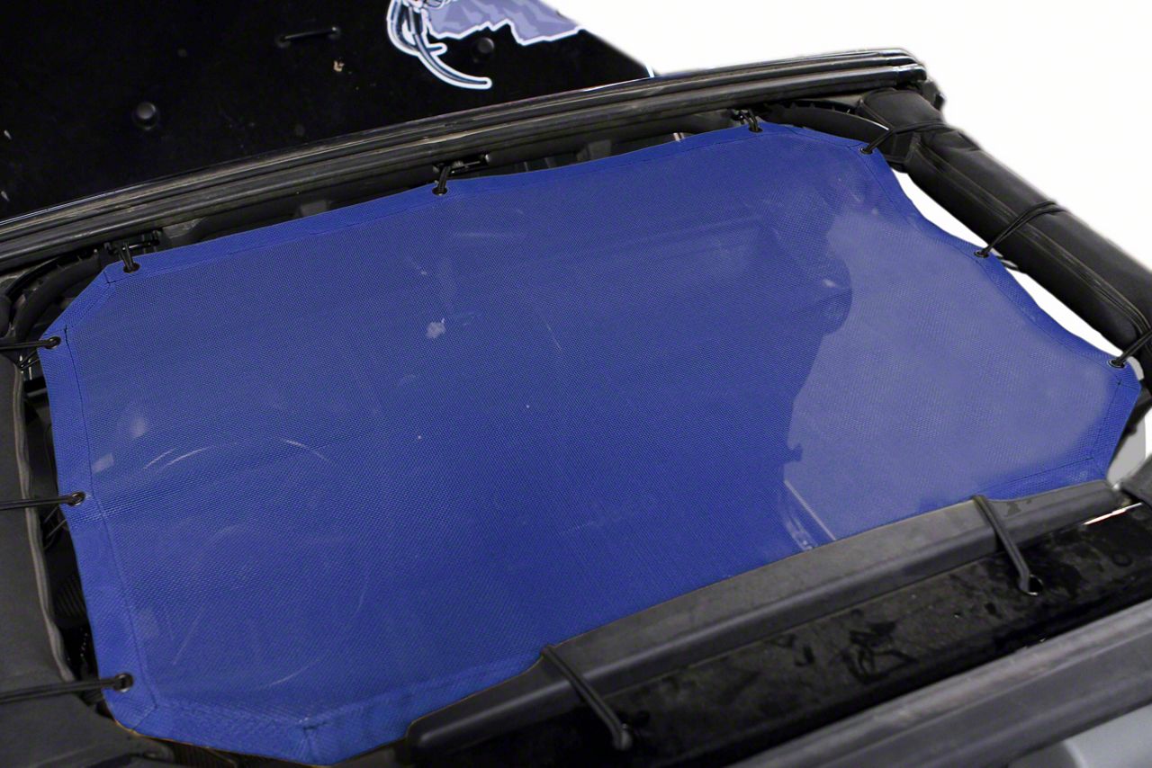 Application. The Steinjager Teddy Top Front Seat Solar Screen Cover - Blue is designed to fit all 2010-2018 Jeep Wrangler JK models.