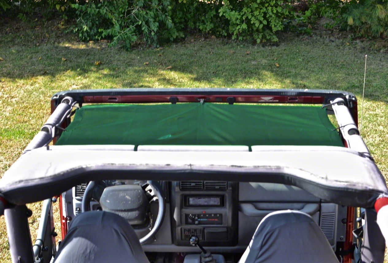 Application. The Steinjager Teddy Top Front Seat Solar Screen Cover - Green is precision made to fit all 1997-2006 Jeep Wrangler TJ models.