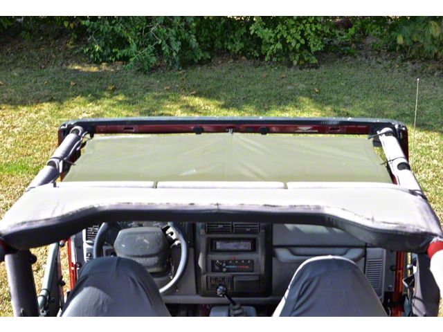 Application. This Steinjager Teddy Top Front Seat Solar Screen Cover in Tan color is designed for use on any 1997-2006 Jeep Wrangler TJ models.