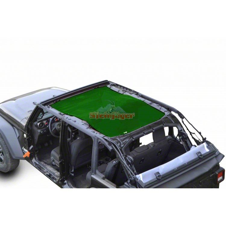 Application. The Steinjager Teddy Top Full Length Solar Screen Cover - Dark Green is manufactured to be a direct fit for all 2018-2024 Jeep Wrangler JL 4 Door models.