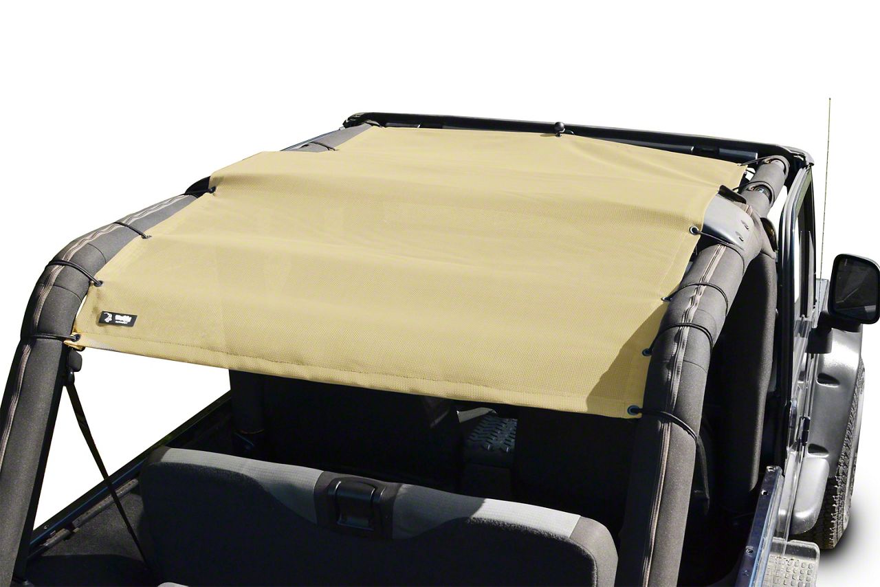 Application. The Steinjager Teddy Top Solar Screen Cover - Tan fits all 2004–2006 Jeep TJ Unlimited models. It is sold individually.