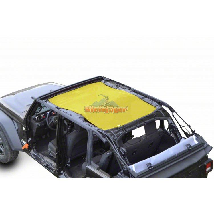Application. The Steinjager Teddy Top Full Length Solar Screen Cover - Yellow is manufactured to fit all 2018-2024 Jeep Wrangler JL 4 Door models