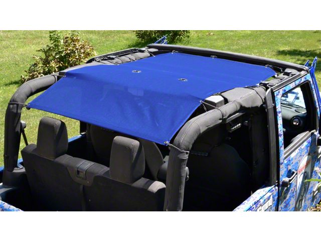 Application. This Blue Steinjager Teddy Top Solar Screen Cover has been specially made to fit 2010-2018 Jeep Wrangler JK 2-Door models.