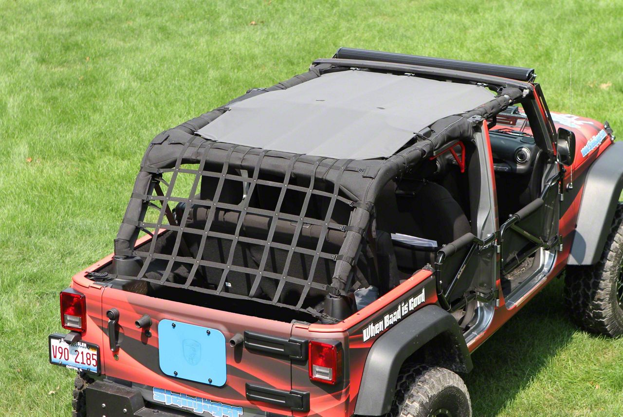 Too Much Sun and Wind. While driving open air during sunny days is the whole point of getting a Jeep Wrangler, there is such a thing as too much sun and wind. Use this Steinjager Teddy Top Solar Screen Cover in Gray to keep the sun and wind exposure under control. It installs in minutes and can also accommodate your factory top or the Steinjagger Cargo Net.