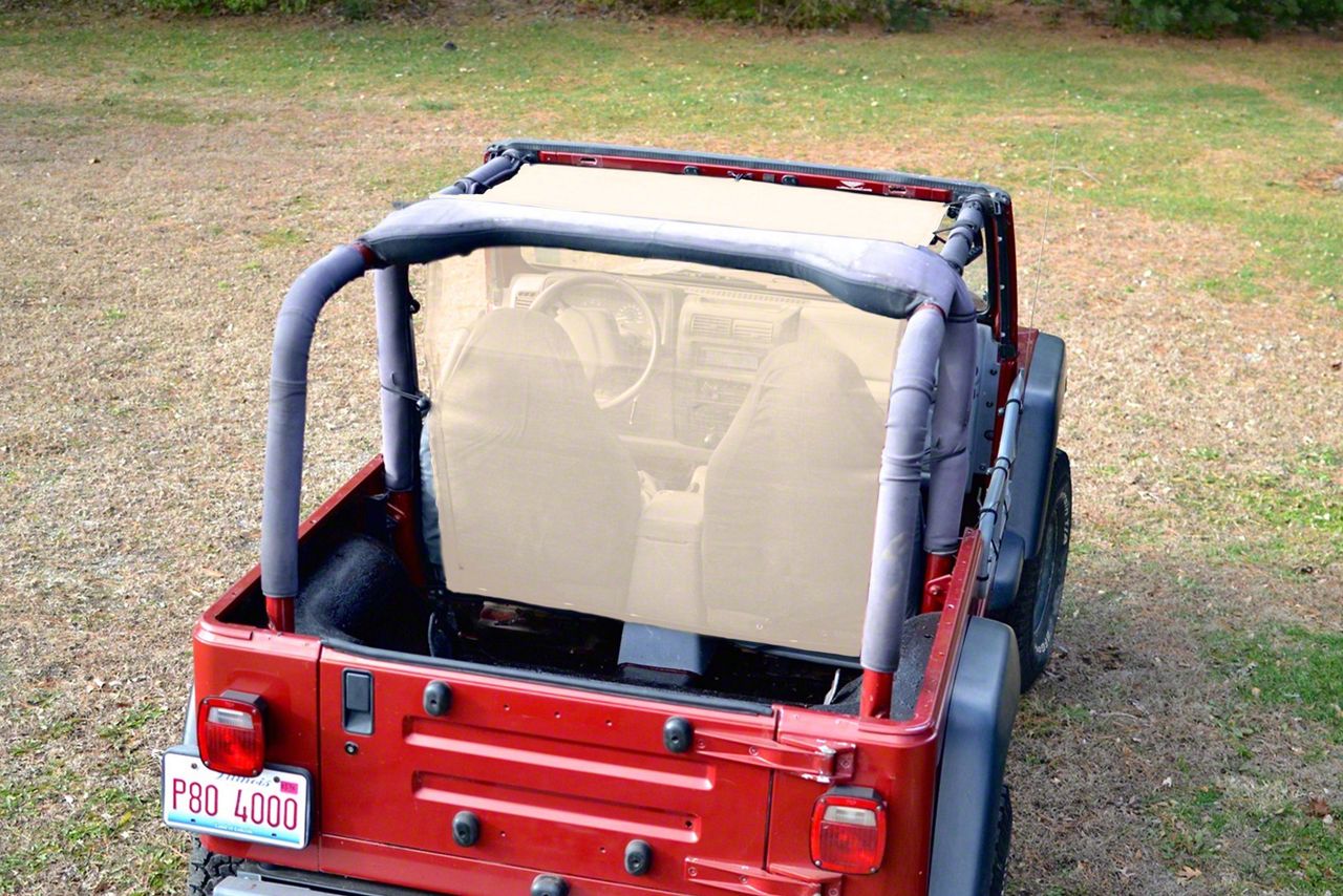 Provides Some Physical Protection for Off-Roading. Installed between the sound bar and the roll bar of your Jeep Wrangler TJ, the Steinjager Teddy® Top Truckster provides limited protection for the driver and passenger by blocking access to the cab from the top and back. As a result, you and your fellow occupants can enjoy a worry-free excursion outdoors, even on bumpy and rocky terrain.