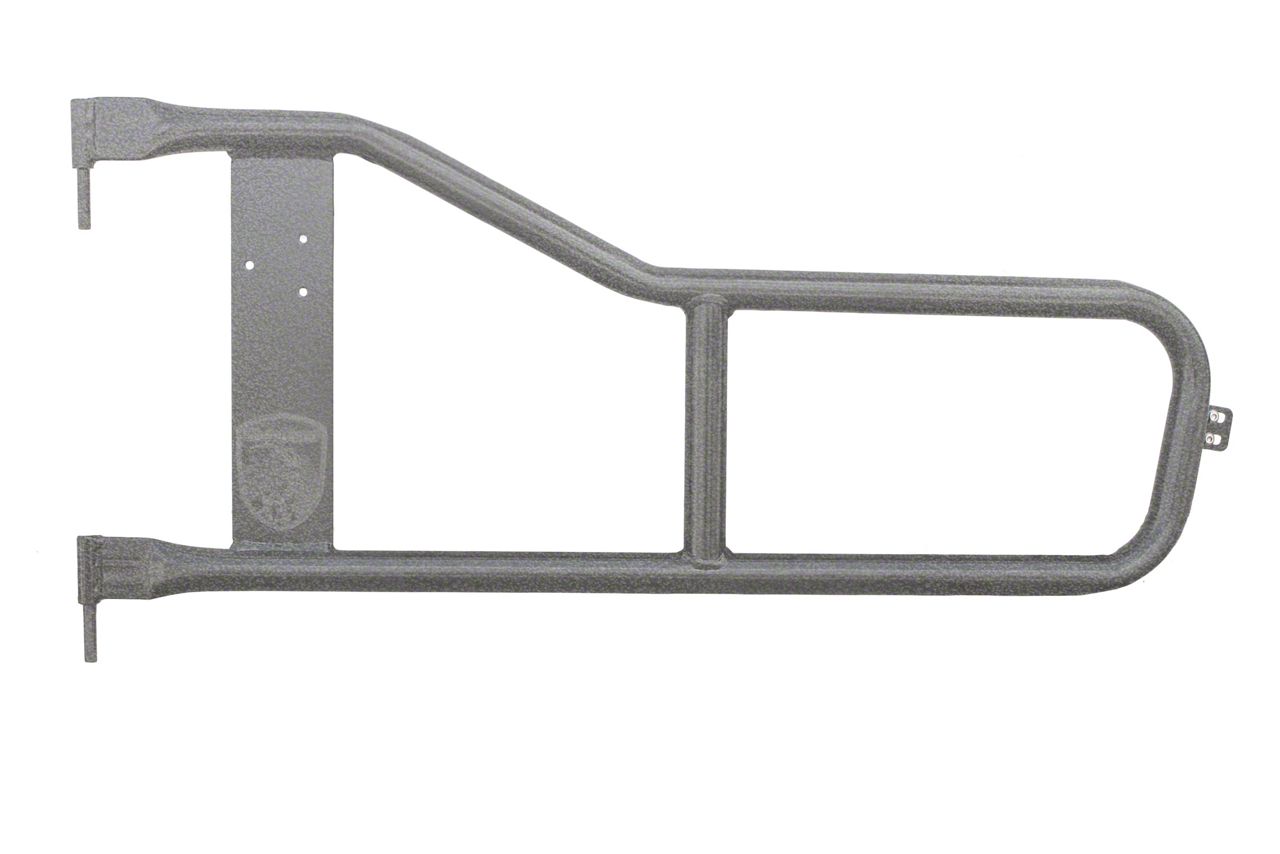 Hammertone Sides. These trail front tube doors act as safety seating driving guards and due to their special design, drivers can switch quickly from factory stock doors and upgrade to tube doors with no hassle. The trail doors come constructed from 1.25-inch steel tubing completely covered in a rugged gray hammertone finish and include custom styled machined door hinges. Manufactured for off-road use only, these trail tube doors come packaged and sold as a pair.