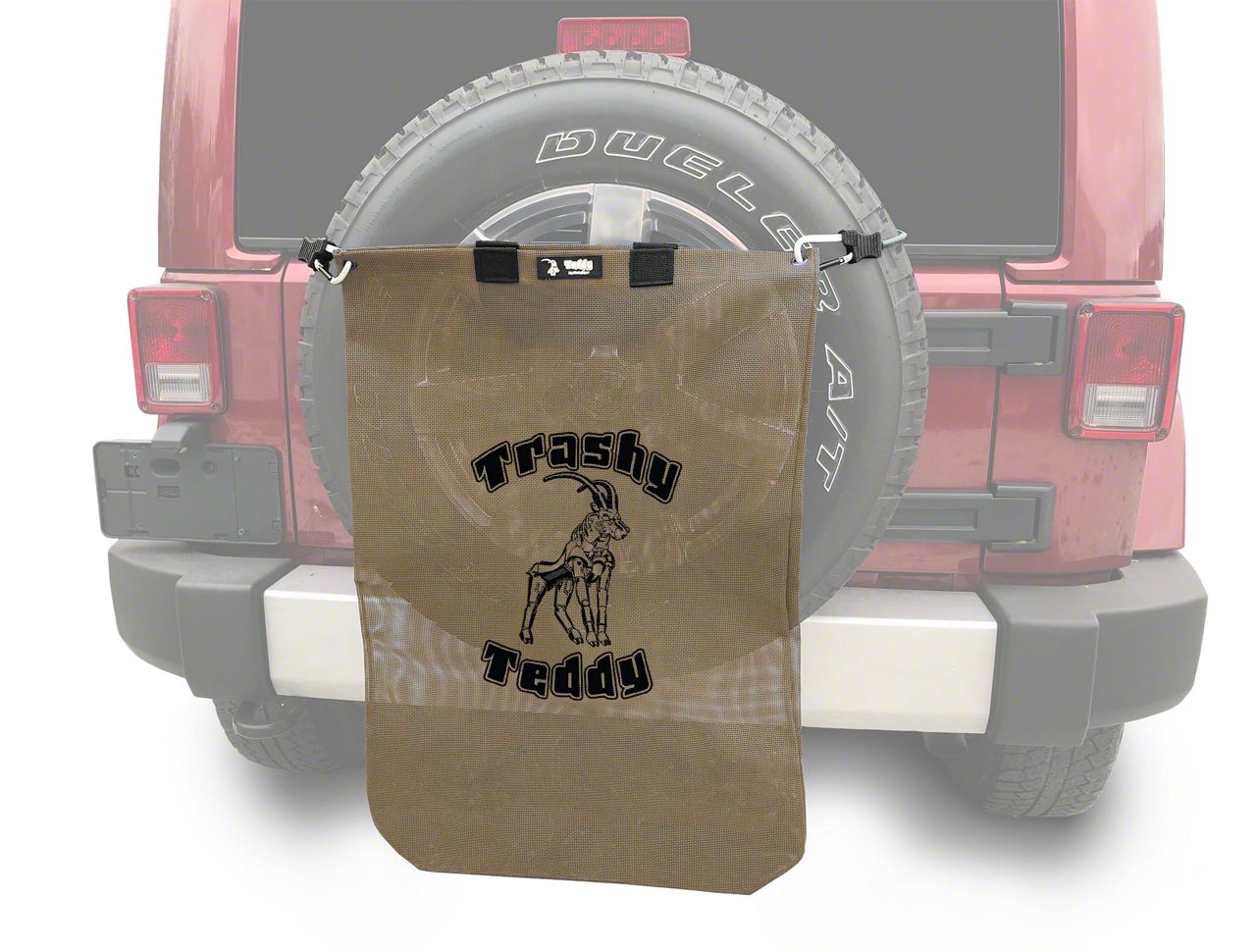 Easy Installation. Steinjager designed this Trashy Teddy for an easy installation that completes by simply fastening it to your TJ’s spare tire or tailgate in a few minutes. An optional carabiner bungee can be bought separately for an alternative mounting.
