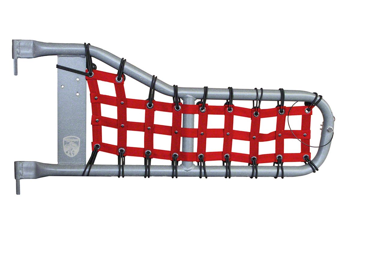 Red Safari Doors. Add an extra layer of protection on your Steinjager Tube Doors with a pair of Steinjager Tube Door Cargo Net Covers in red. This door cover helps keep out big road debris and add a very safari-style look to your Jeep. The deep red color matches other red Steinjager Jeep accessories such as the cargo net for a very cohesive Jeep customization.