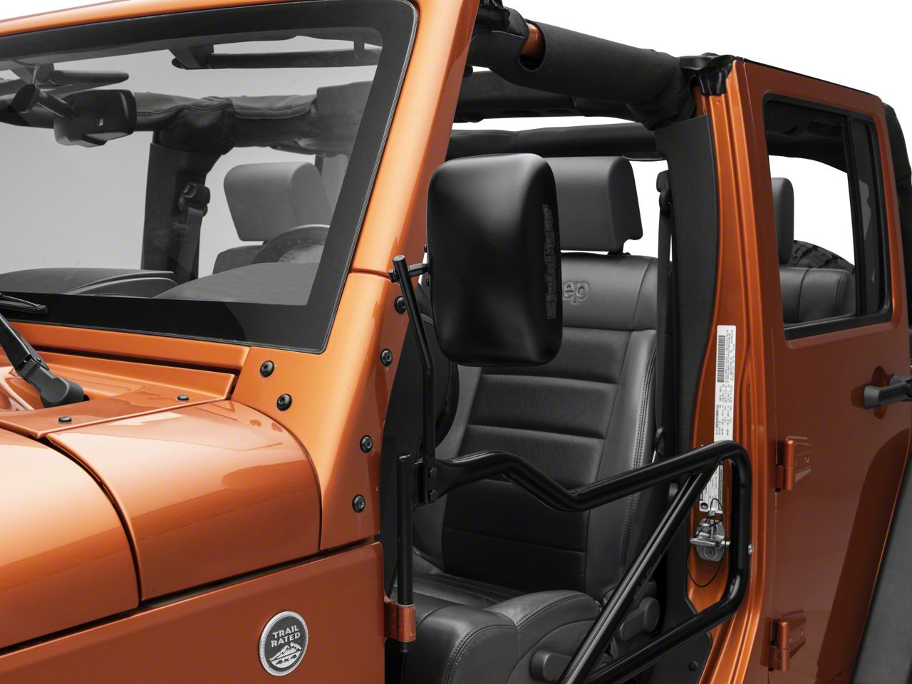 Application. This Steinjager Tube Door Mirror Kit; Black is designed for 2007-2018 Jeep Wrangler JK models with Steinjager Tube Doors installed.