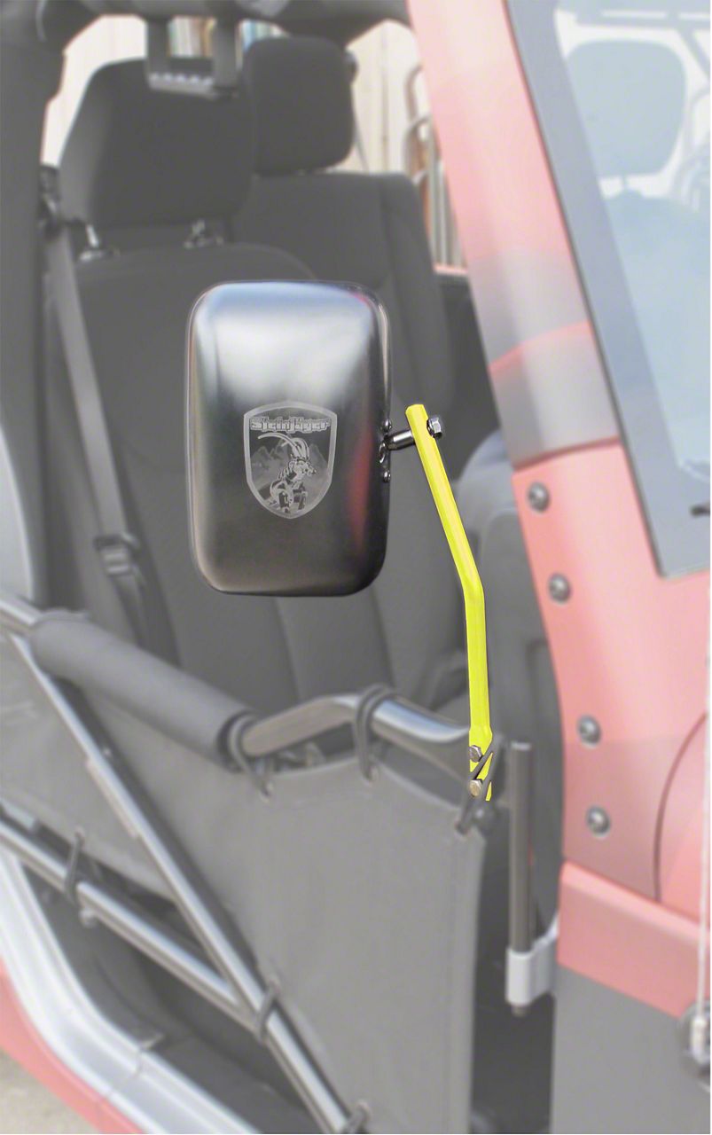 Application. This Steinjager Tube Door Mirror Kit - Neon Yellow fits all 2007-2018 Jeep Wrangler JK models.