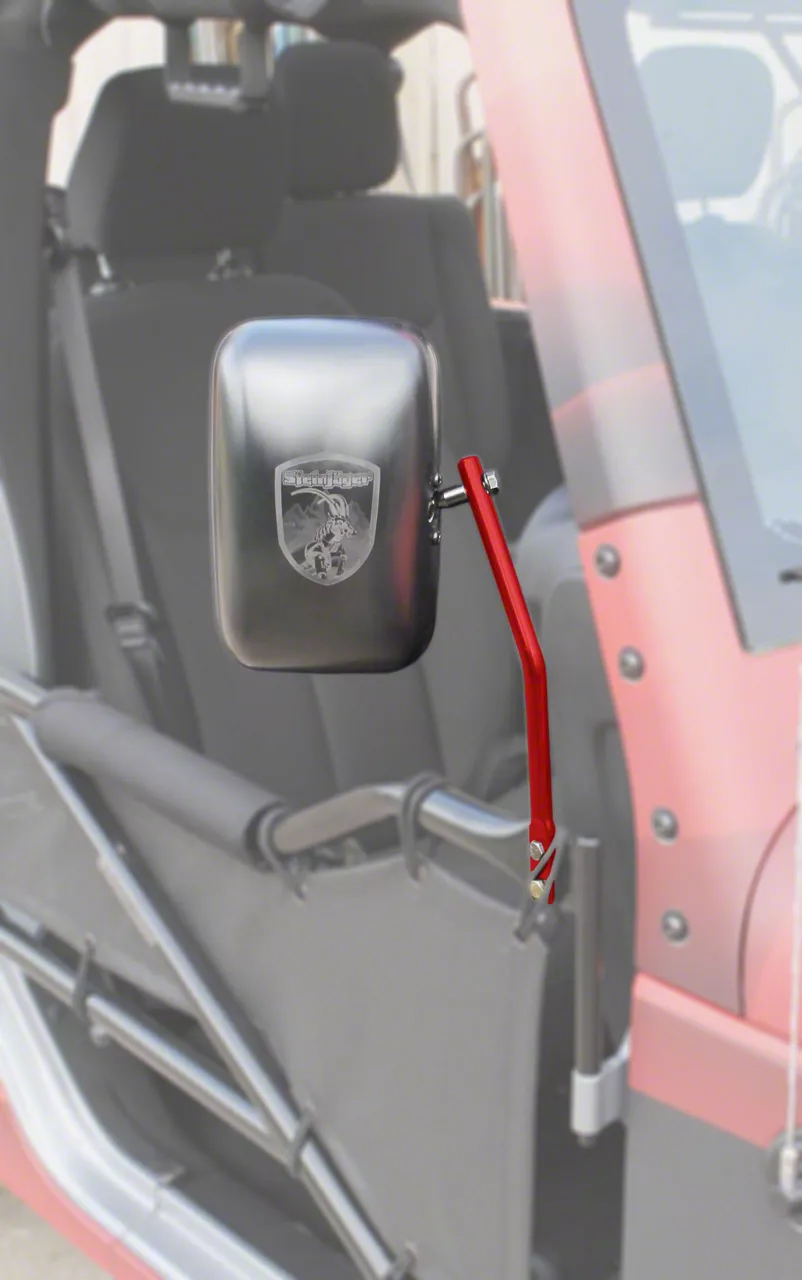 Quality Construction. This Steinjager Red Baron Tube Door Mirror Kit is made of heavy-duty ½ in. steel material that can withstand high impacts and corrosive weather conditions. So even if your Jeep receives a heavy beating from your extreme off-road adventures, this mirror kit will remain unscathed.