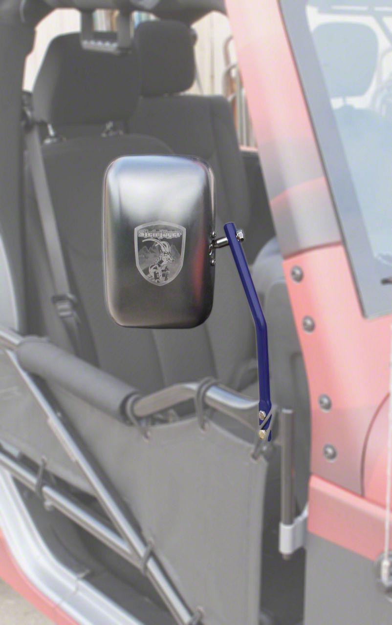 Application. This Steinjager Tube Door Mirror Kit with a Southwest Blue color is tailored to fit all 2007-2018 Jeep Wrangler JK models.