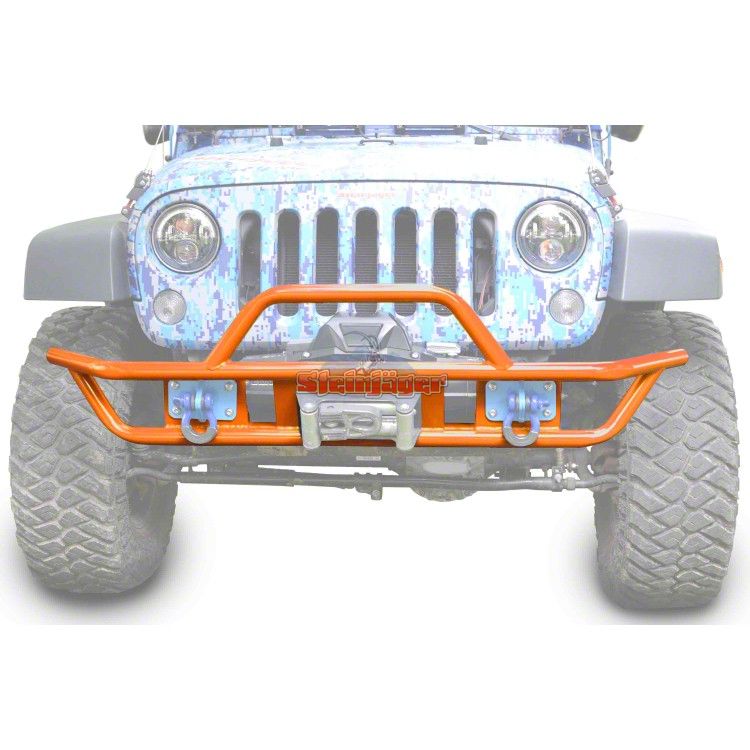 Application. The Fluorescent Orange Tube Front Bumper from Steinjager fits all 2007-2018 Jeep Wrangler JK models.